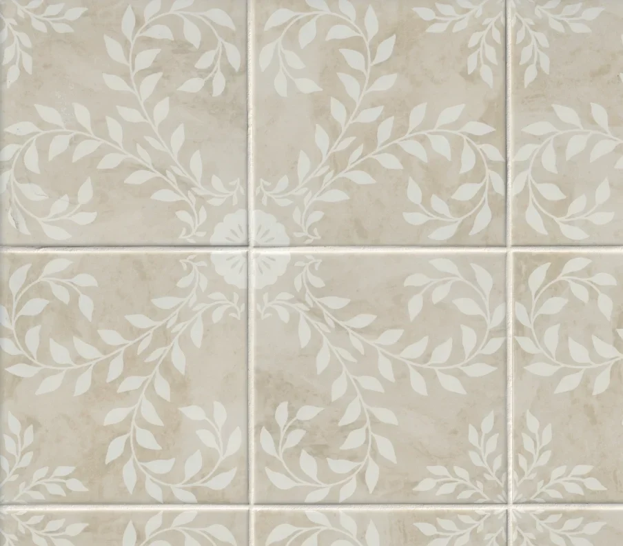 The Kelli Fontana Inlay Proper Naples Beach Porcelain Wall and Floor Tile is an 8″ x 8″ matte-finish tile featuring a warm taupe background adorned with an elegant white leaf and floral pattern. Inspired by Kelli Fontana’s Bone Inlay wallpaper series, this durable porcelain tile adds timeless femininity and ornate elegance to both floors and walls. Its design is versatile, making it suitable for various spaces such as kitchens, bathrooms, foyers, and porches. The tile’s neutral color palette allows it to blend seamlessly into different interior styles, from beach houses to city apartments.